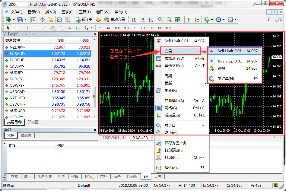 2.【市场报价】→交易品种→【新订单】